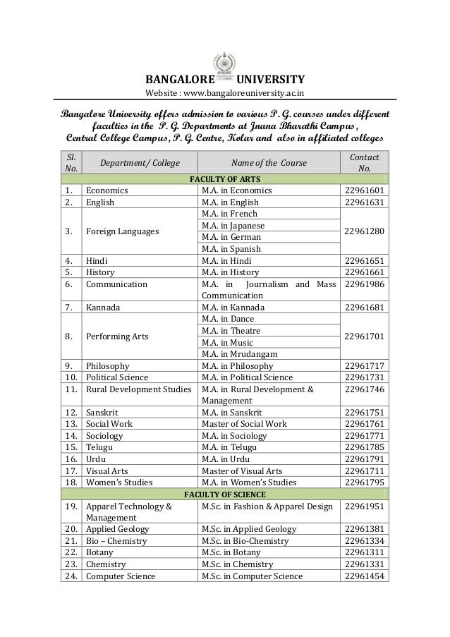 Bangalore University Calendar - University offers various ug (undergraduate).