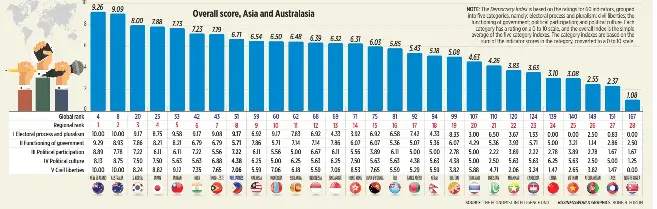 Democracy Index 2018 : Electoral process and pluralism, the functioning of government, political participation.