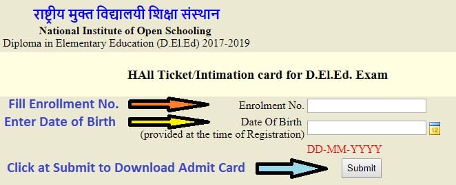 Nios D El Ed Hall Ticket 2018 Released At Dled Nios Ac In Download Now The national institute of open schooling (nios) has released the examination forms for the deled on the official website, the link for which is dled.nios.ac.in.