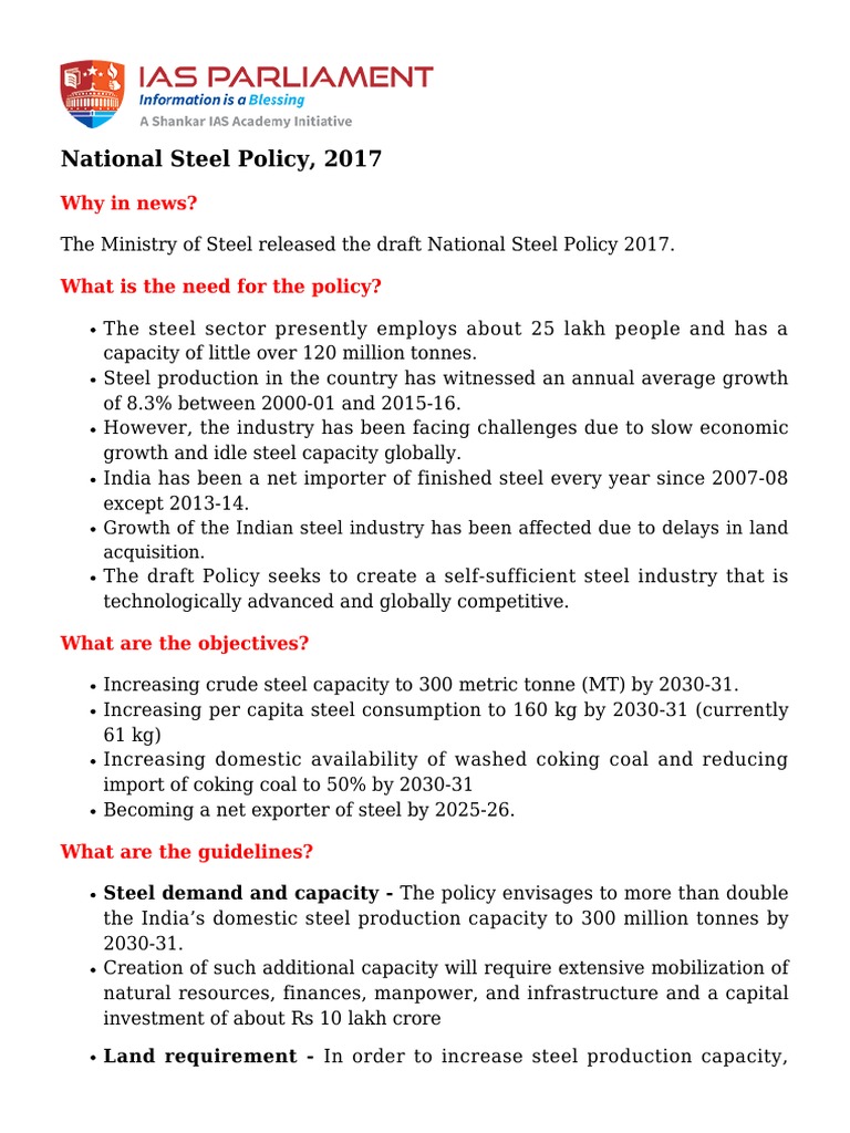 National Steel Policy / Steel secretary says new policy saved rs 50 bn forex, spiked crude capacity.