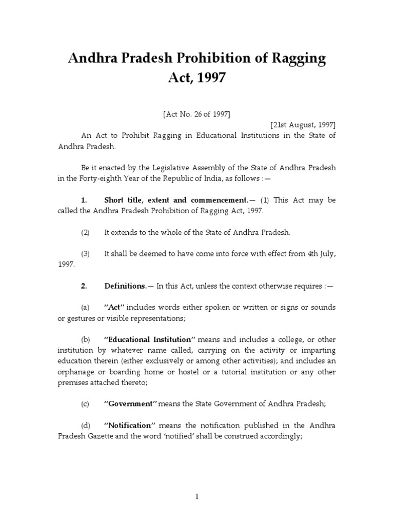 Ragging Act - An act to prohibit ragging in edu~ational the state of maharashtra.