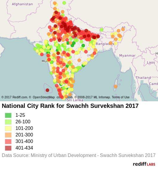 Swachh Survekshan 2017 / National ranking of 4000+ indian cities by mohua.