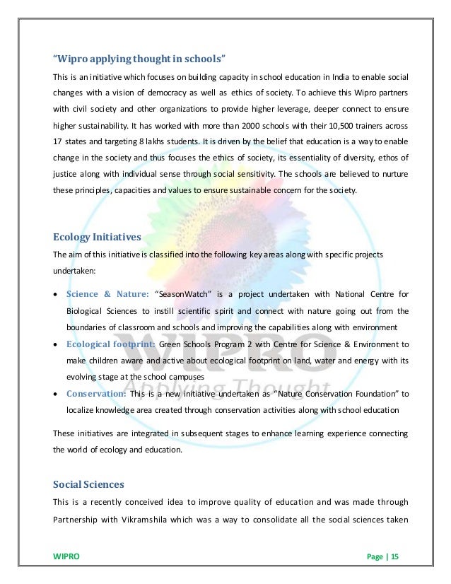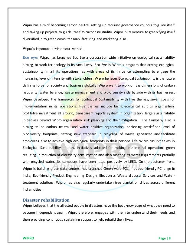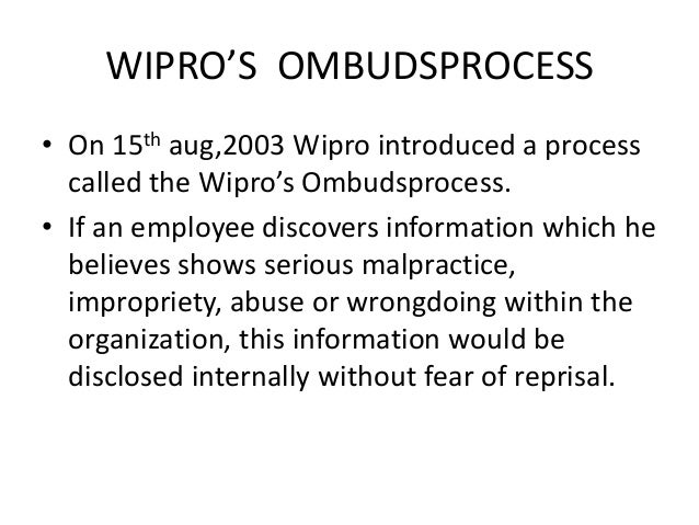 Wipro Ethical Practices : Wipro case study case study from corporate visions.